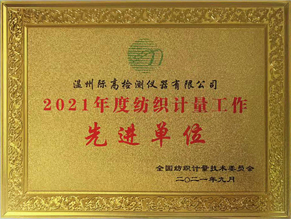 近日,全國紡織計量技術委員會2021年度年會在無錫召開。會上,溫州際高檢測儀器有限公司榮獲“2021年度紡織計量工作先進單位”。